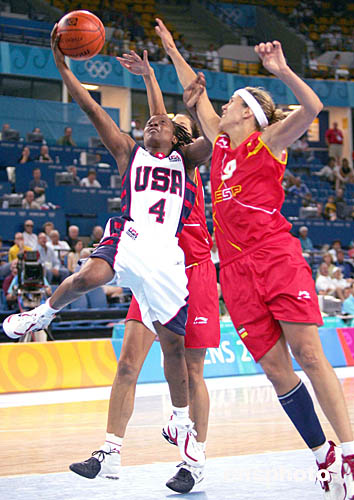 在當(dāng)?shù)貢r(shí)間8月20日舉行的女子籃球賽中,美國選手Johnson Shannon單手上籃技驚四座。