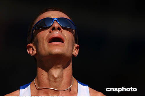 在當?shù)貢r間8月20日舉行的男子20公里競走比賽中,意大利選手布魯納蒂(IVANO BRUGNETTI)以1小時19分40秒的成績奪得冠軍。圖為他奪冠后仰天長望的鏡頭。