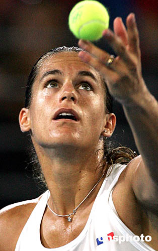 圖為在當(dāng)?shù)貢r間8月21日舉行的奧運會女單決賽中,法國網(wǎng)壇名將毛瑞斯莫不敵比利時選手海寧屈居亞軍。