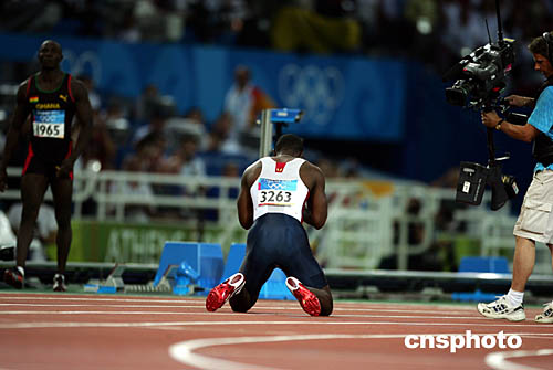 美國選手加特林(Justin Gatlin)在當(dāng)?shù)貢r間8月22日舉行的男子100米“飛人”大戰(zhàn)中力壓群雄奪取桂冠。圖為他在奪冠后興奮的慶祝自己的勝利。