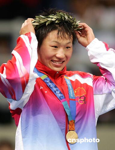 中新社雅典八月二十三日電 十九歲的北京女孩王旭今天在奧運會女子七十二公斤摔跤比賽中連闖兩道難關(guān),為中國代表團再添一枚金牌。