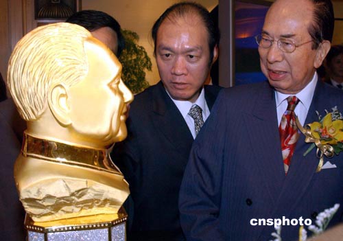 為紀(jì)念世紀(jì)偉人、中國(guó)改革開放的總設(shè)計(jì)師鄧小平先生百年誕辰,“金至尊”特別動(dòng)員三十多人精心鑄造“鄧小平金至尊美鉆金像”,八月二十四日在香港舉行揭幕儀式,該像以2.8公斤黃金,5000顆總重量達(dá)100卡拉鉆石鑄造而成,總價(jià)值超過(guò)港幣一百萬(wàn)。作者:錢興強(qiáng)