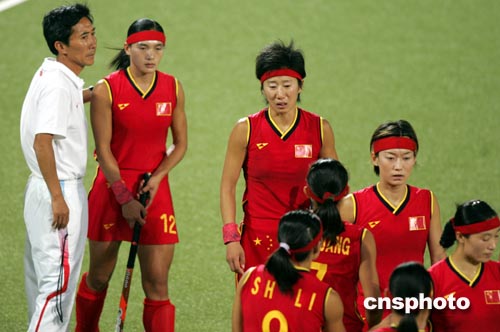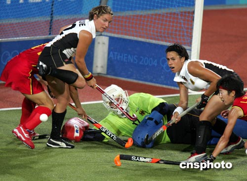 雅典當?shù)貢r間8月24日晚,奧運女子曲棍球半決賽在中國與德國隊之間舉行,中國女曲在全場占優(yōu)的形勢下有多次錯失破門良機,最終在點球大戰(zhàn)中以3比4負于德國,無緣決賽。中新社記者:任晨鳴