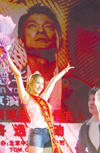 中新網8月25日電 據(jù)京華時報報道,令所有劉德華歌迷矚目已久的“劉德華歌迷形象代言人評選活動”終于在8月20日晚進行了決賽。經過采訪闡釋、現(xiàn)場采訪、才藝展示三個比賽項目的層層角逐,堪稱中國演出界的首位“歌迷形象代言人”終于揭開了她的神秘面紗,她就是在北京擔任編導工作的李沐怡。
