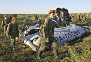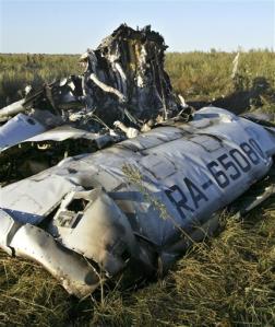 俄圖-134墜毀現(xiàn)場(chǎng)的飛機(jī)殘骸。(美聯(lián)圖)