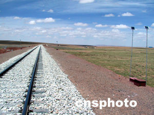 領(lǐng)銜開展青藏鐵路凍土工程科研攻關(guān)的中國科學(xué)院凍土工程國家重點實驗室提供的相關(guān)資料顯示:建設(shè)中的青藏鐵路全長一千一百四十二公里,其中新修鐵路約一千一百一十八公里,要穿越連續(xù)多年凍土區(qū)五百五十公里,不連續(xù)多年凍土區(qū)八十二公里。在這六百三十二公里凍土區(qū)當(dāng)中,年均地溫高于零下一攝氏度的多年凍土區(qū)二百七十五公里,高含冰量多年凍土區(qū)二百二十一公里,兩者重疊路段約一百三十四公里。