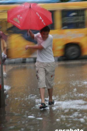 中新社福州八月二十五日電(陳勇 林維莉)今天下午三點(diǎn)起,福州豪雨如注,市中心人車稀少。據(jù)最新的氣象預(yù)告,強(qiáng)臺(tái)風(fēng)“艾利”將奔襲福建、浙江一帶。