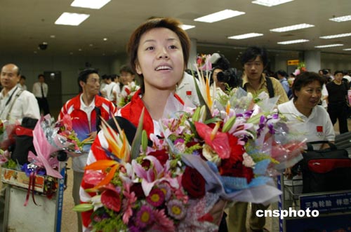 8月26日,北京首都國(guó)際機(jī)場(chǎng)又迎來(lái)一批載譽(yù)歸來(lái)的奧運(yùn)健兒,包括羽毛球、乒乓球、游泳、體操、舉重等200多名選手,他們?cè)跈C(jī)場(chǎng)受到英雄般的歡迎,幾乎每個(gè)人都被鮮花包圍。中新社記者:盛佳鵬