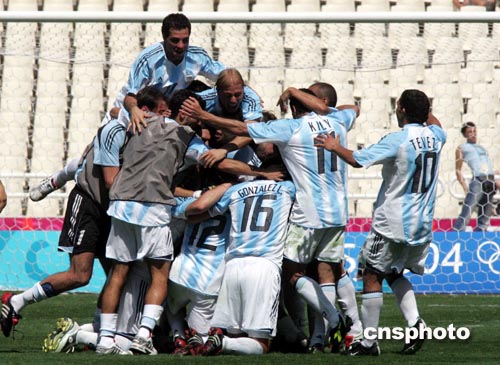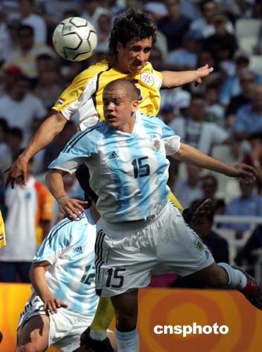 中新社雅典八月二十八日電 (記者 宋方燦)奧運(yùn)會(huì)男子足球比賽今天在雅典謝幕,阿根廷隊(duì)在決賽中以一比0力克南美近鄰巴拉圭隊(duì),奪取金牌。特維茲打入了本場(chǎng)比賽的唯一入球,這也是他在本屆奧運(yùn)會(huì)中的第八個(gè)進(jìn)球。巴拉圭隊(duì)在下半時(shí)兩人被紅牌罰下,最后僅以九人應(yīng)戰(zhàn)。