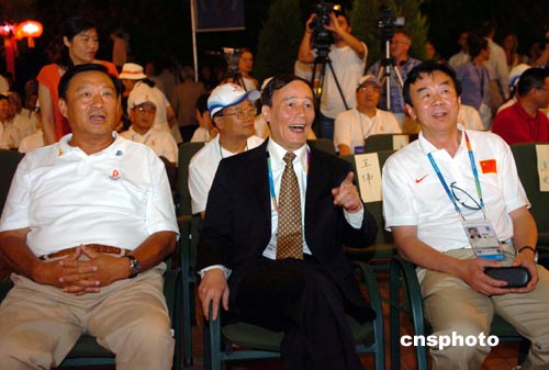 第二十九屆奧運(yùn)會組委會執(zhí)行主席、中國國家體育總局局長袁偉民,第二十九屆奧運(yùn)會組委會執(zhí)行主席、北京市市長王岐山,國家旅游局局長何光(左日右韋),第二十九屆奧運(yùn)會組委會副主席蔣效愚,中國駐希臘大使唐振琪,VISA國際組織首席執(zhí)行官克里斯托弗,希臘旅游部部長迪米特里斯,雅典市市長巴科雅姆尼,國際奧委會及雅典奧組委的有關(guān)官員出席了儀式。