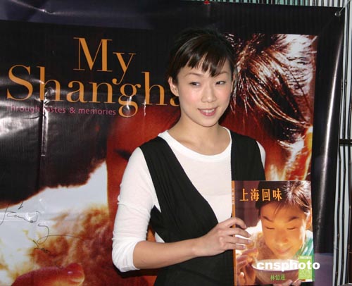 8月29日下午,走出婚變陰影的著名歌星林憶蓮在臺北101大樓一書店簽名售書《上;匚丁罚痛蠹乙黄鸱窒硇r候和媽媽、外婆的煮飯經(jīng)驗。圖為林憶蓮展示新書《上;匚丁。中新社記者:黃少華
