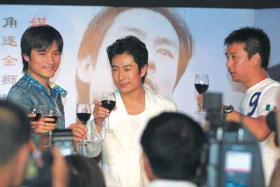 《世界》男主演成泰燊和他的好友黃磊、耿樂(lè)一亮相,記者們就開始了大規(guī)模的圍追采訪。一身白衣的成泰燊說(shuō),這次和導(dǎo)演賈樟柯的合作,實(shí)際上也是圓了與賈導(dǎo)九年前的一個(gè)合作之約,從合作再到電影入選威尼斯電影節(jié),對(duì)自己來(lái)說(shuō)更是一次完美的圓夢(mèng)。據(jù)成泰燊介紹,他和女主角趙濤等主創(chuàng)一行將在9月2日飛赴威尼斯,在那里等待競(jìng)賽單元開始。這次壯行會(huì)上,本來(lái)導(dǎo)演賈樟柯也應(yīng)該出現(xiàn)的,但據(jù)成泰燊解釋,因?yàn)橛捌笃诘囊恍┦虑,?dǎo)演已經(jīng)提前到國(guó)外了,他們將在威尼斯會(huì)合。