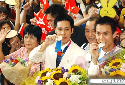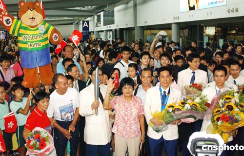在2004雅典奧運(yùn)會(huì)獲取佳績(jī)的中國(guó)香港奧運(yùn)代表團(tuán),八月三十一日凱旋返港,受到香港各界人士及眾多傳媒的熱烈歡迎及采訪。作者:錢興強(qiáng)