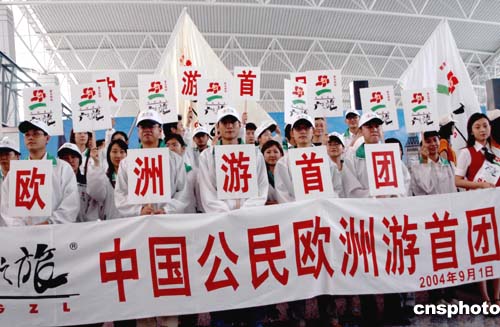 九月一日,首批準備出發(fā)游歐洲的廣州游客匯集廣州新白云機場。歐洲游今日起全面開放,有資質(zhì)的國際旅行社將獲批在今日后,可以向總共29個歐洲國家開展中國公民自費組團出境游業(yè)務(wù),中國大陸即將掀起歐洲旅游熱。作者:劉衛(wèi)勇