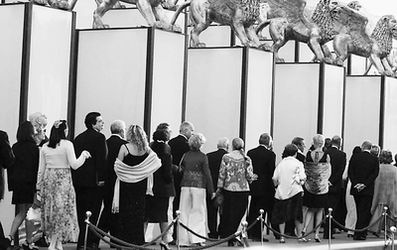不知道從什么時(shí)候開始,歐洲電影節(jié)和罷工游行就像孿生兄弟一樣,形影不離。本屆威尼斯電影節(jié)也不能幸免。傍晚時(shí)分,在參展演員和導(dǎo)演下榻的威斯汀酒店外,一群統(tǒng)一著裝的人組成方隊(duì)圍在門口,他們每個(gè)人身上都掛著大紙牌,紙牌背面寫著:“威娜”危害身體健康,請(qǐng)禁止其生產(chǎn)。原來(lái)本屆電影節(jié)最大的贊助商之一就是世界知名美發(fā)廠商“威娜”。電影節(jié)開幕式開始,明星們走上紅地毯時(shí),還不斷有游行隊(duì)伍在周圍逡巡,不過(guò),盡管是游行,他們的態(tài)度卻很平和,沉默寡言,絲毫沒(méi)有影響電影節(jié)開幕式的進(jìn)行。