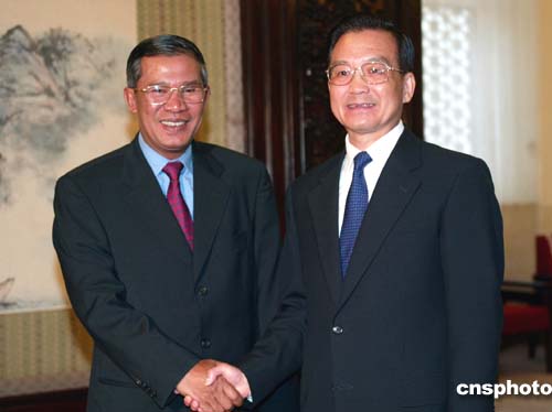 溫家寶表示,中國政府將繼續(xù)堅持“睦鄰、安鄰、富鄰”的周邊外交政策,支持柬埔寨政府為維護國家穩(wěn)定、鞏固民族團結(jié)和發(fā)展經(jīng)濟所做的努力。