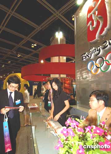 第八屆北京香港經(jīng)濟(jì)合作研討洽談會暨奧運(yùn)經(jīng)濟(jì)市場推介會9月2日在香港會展中心開幕﹐北京市市委書記劉淇與市長王歧山﹑全國政協(xié)副主席霍英東﹑香港特首董建華﹑香港中聯(lián)辦主任高祀仁共同打開2008年在北京舉辦的第29屆奧林匹克運(yùn)動會會旗。作者:趙振清
