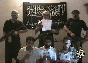 在錄像中,3名土耳其人質(zhì)手持護(hù)照跪在地上,身后站著3名頭戴黑頭巾、身著黑色服飾的武裝分子。其中1名武裝分子宣讀聲明說,這3名土耳其人質(zhì)曾與美軍合作,對(duì)伊拉克人犯下了罪行。隨后,3名人質(zhì)被斬首。