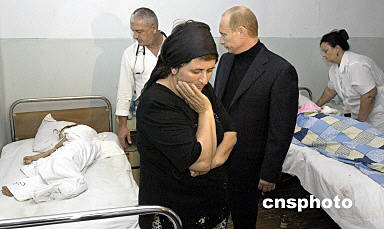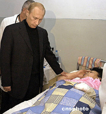 9月4日,俄羅斯總統(tǒng)普京在飛抵北奧塞梯共和國別斯蘭市后看望在人質(zhì)事件中的受傷人員。隨后,普京與有關(guān)部門領(lǐng)導(dǎo)人舉行緊急會(huì)議,下令封鎖別斯蘭市,關(guān)閉北奧塞梯共和國的邊境,全力搜捕所有參與劫持人質(zhì)的恐怖分子。俄羅斯聯(lián)邦北奧塞梯共和國緊急情況部官員4日說,俄人質(zhì)事件中的遇難人數(shù)已上升至250人。