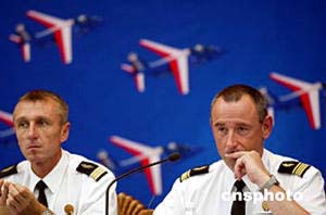 中新網(wǎng)9月7日電 日前,法國空軍飛行表演隊(duì)先遣組組長讓·馬克在北京透露,“法蘭西巡邏兵”飛行表演隊(duì)10月將隨希拉克總統(tǒng)到訪北京,在北京南苑機(jī)場舉行兩場表演,然后赴武漢、珠海、香港巡演。法蘭西巡邏兵是世界五大特級飛行隊(duì)之一,此次隨總統(tǒng)出訪是第一次。表演隊(duì)使用阿爾法噴氣教練機(jī)。此次表演由國防部外事辦公室和空軍有關(guān)單位主辦。中新社記者:鄭萍萍