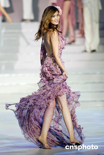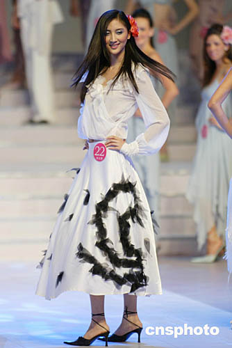 | 9月5日晚,“時(shí)尚杭州之旅·2004年新絲路世界模特大賽”在浙江省人民大會(huì)堂舉行,來自二十八個(gè)國家的四十七名選手將參加小禮服、泳裝、晚裝展示、情景劇表演以及系列專業(yè)技能展示的比賽。中新社記者:盛佳鵬