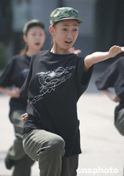 九月六日,為紀(jì)念現(xiàn)代芭蕾舞劇《紅色娘子軍》演出四十周年,中芭舞團(tuán)特組織八十名演職員參加“重走娘子軍之路”的學(xué)軍活動。青春靚麗的孟寧寧將在十月八日出演新版舞劇《娘子軍》的主角吳瓊花。中新社記者:廖文靜