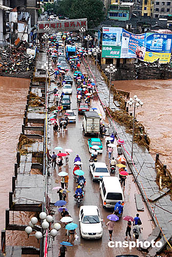經(jīng)過各方的奮力搶救,六日下午,開縣的多數(shù)進(jìn)出境主要通道已能通行。從重慶經(jīng)萬州到開縣的萬開路尚未通行,因在該縣渠口鄉(xiāng)境內(nèi)出現(xiàn)一處大滑坡,堆積土石兩萬多立方米,估計(jì)到七日中午才能恢復(fù)交通。