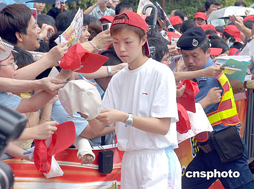 一名六年級小學(xué)生鄭同學(xué)表示,他一共取得了七名運(yùn)動員簽名,其中最高興是可以取得田亮親筆簽名,亦可以近距離接觸他們,他覺得運(yùn)動員很親切和友善,雖然排隊(duì)有點(diǎn)辛苦,但可以親眼目睹運(yùn)動員,覺得很值得。