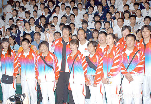 圖:國(guó)家奧運(yùn)金牌代表團(tuán)與學(xué)生合照