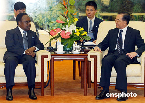 九月九日,中國國務(wù)院總理溫家寶在北京會見加蓬總統(tǒng)邦戈。中新社記者:鄭萍萍