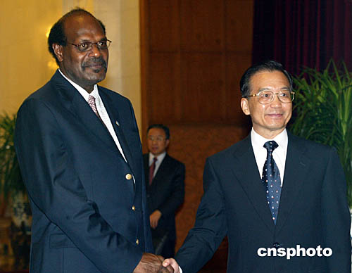 中國國務(wù)院總理溫家寶與瓦努阿圖總理沃霍爾九日在北京舉行會談。