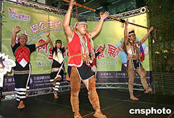 為期三天的阿里山鄒族美食展9月10日在臺北開展。在開展儀式上,鄒族的男女青年表演傳統(tǒng)舞蹈。作者:黃少華