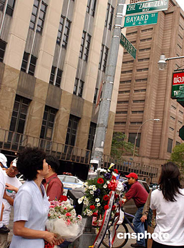 據(jù)美國僑報報道,“曾喆街”命名掛牌儀式在“911”紀(jì)念日當(dāng)天下午1時30分在紐約華埠舉行,華埠的擺也街從茂比利街到巴士打街之間地段屆時將被永久性地命名為“曾喆街”。