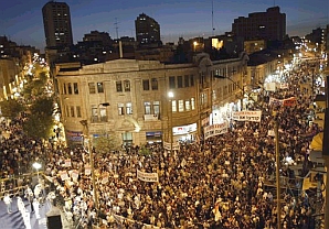 中新網(wǎng)9月13日電 據(jù)以色列《耶路撒冷郵報(bào)》報(bào)道,當(dāng)?shù)貢r(shí)間9月12日晚,數(shù)萬名以色列人先后涌上首都耶路撒冷的街頭,舉行了一場聲勢浩大的示威活動,對以色列總理沙龍?zhí)岢龅拿髂昴甑浊皬募由车貛С奋娪?jì)劃提出強(qiáng)烈抗議。