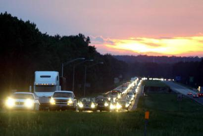 據(jù)路透社報(bào)道,颶風(fēng)“伊萬”即將登陸美國(guó)東南部沿海。當(dāng)?shù)卣φf服上百萬居民盡快疏散至安全地帶。圖為美國(guó)南部沿海居民星夜撤出颶風(fēng)登陸區(qū)。(固山)