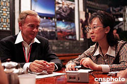 中法兩國(guó)文化交流日益密切。九月十七日,法國(guó)駐華大使館文化專(zhuān)員白尚化(左)在與中新社記者交談平遙國(guó)際攝影大展的所見(jiàn)所聞。作者:張?jiān)?