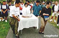 美西時(shí)間九月十八日,中國(guó)駐舊金山總領(lǐng)館的外交官們帶著大月餅到加州庫(kù)柏蒂諾市參加當(dāng)?shù)貎S社舉辦的第六屆中秋游園會(huì)。作者:陳鋼