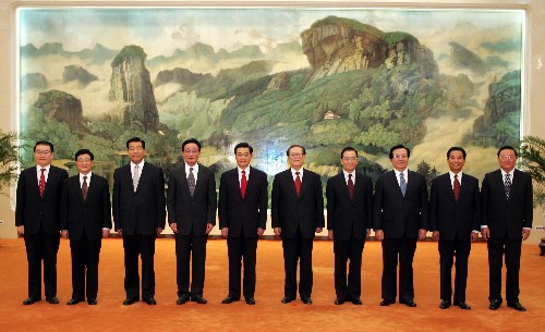 下午五時(shí)四十五分,胡錦濤、江澤民、吳邦國(guó)、溫家寶、賈慶林、曾慶紅、黃菊、吳官正、李長(zhǎng)春、羅干等領(lǐng)導(dǎo)來(lái)到參加全會(huì)的人員中間,同大家親切見(jiàn)面,并合影留念。