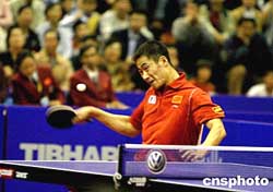 二零零四大眾汽車中國乒乓球公開賽九月十九日下午在長春市五環(huán)體育館落下帷幕,四項冠軍全被中國選手獲得。在引人關(guān)注的男子單打比賽中,王勵勤以四比三險勝隊友王皓,獲得冠軍。作者:史一博