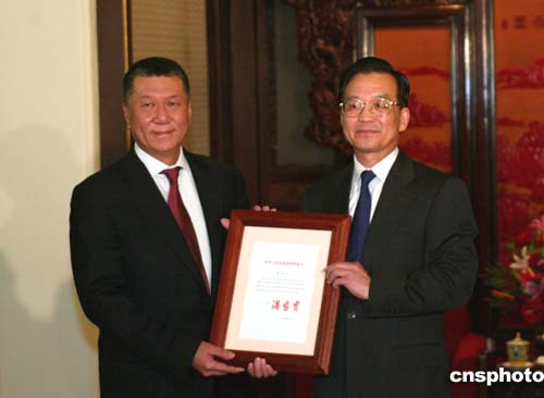 中新社北京九月二十日電(記者董會(huì)峰)國(guó)務(wù)院總理溫家寶二十日下午在中南海紫光閣親切會(huì)見(jiàn)了澳門特別行政區(qū)行政長(zhǎng)官何厚鏵,并向他頒發(fā)了任命他為澳門特別行政區(qū)第二任行政長(zhǎng)官的國(guó)務(wù)院令。