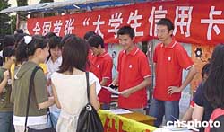 中新社北京九月二十日電(鄧敏)首張為高校學(xué)子量身定制的“大學(xué)生信用卡”今天亮相北京,目前已有北京大學(xué)部分學(xué)生開(kāi)始申辦這種僅面向在校大學(xué)生的信用卡。