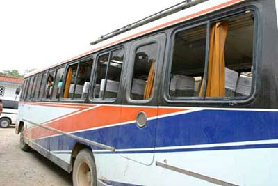 據(jù)知情者將,激烈摩擦不久,馬隊(duì)人員騎馬從石林中返回到龍灣村村口附近的臨時馬棚,但他們并沒有息戰(zhàn),而是從馬棚中取出棍棒、鋼管等物什,在村口將乘坐大客車返回村里的群眾演員再次圍住,對客車開始猛烈的進(jìn)攻,瞬間4輛景泰縣某單位的大客車遭到了劇烈打砸,車上所有玻璃被全部打碎,車身到處被砸滿了傷痕,車上的部分群眾演員也遭到暴打,學(xué)生演員們開始還擊,沖突再次升級,連全力勸架的學(xué)生教官也被打的頭破血流。