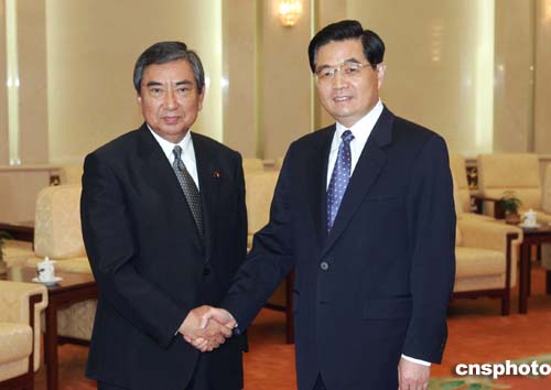 圖:胡錦濤會(huì)見(jiàn)日本國(guó)會(huì)眾議長(zhǎng)河野洋平