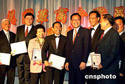 當(dāng)?shù)貢r(shí)間九月二十三日,由美國華人企業(yè)家和著名華商團(tuán)體領(lǐng)袖發(fā)起成立的美國華商會在紐約舉行職員就職典禮,中國駐紐約總領(lǐng)事劉碧偉(左五)向商會會長、秘書長、理事等三十多人頒發(fā)了就職證書。作者:趙海燕