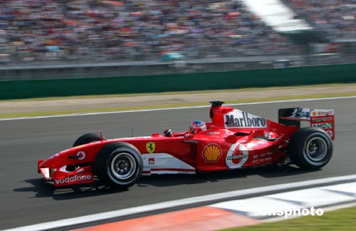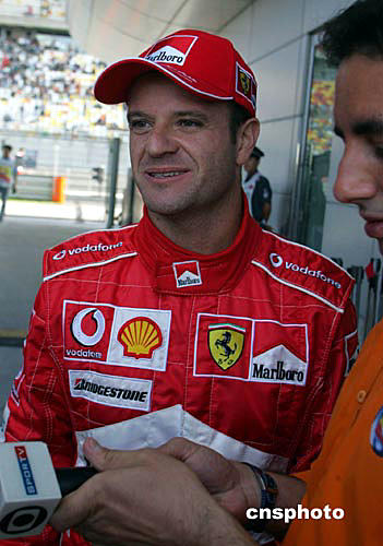 九月二十五日,F(xiàn)1中國大獎(jiǎng)賽排位賽在上海國際賽場舉行,法拉利車手巴里切羅以一分三四秒取得桿位。車王舒馬赫在正式排位賽第一個(gè)彎道賽車滑出賽道,明天將在最后一位發(fā)車。作者:潘索菲