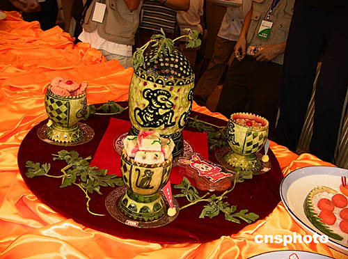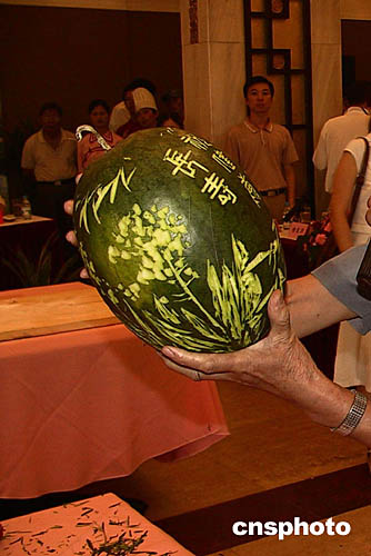 浙江省平湖市是中國(guó)的“西瓜之鄉(xiāng)”,明末清初該地就有了民間雕刻西瓜的文字記載。平湖市日前舉行西瓜節(jié),當(dāng)?shù)啬芄で山炒箫@身手,一展西瓜雕刻的絕技。作者:童櫟丞
