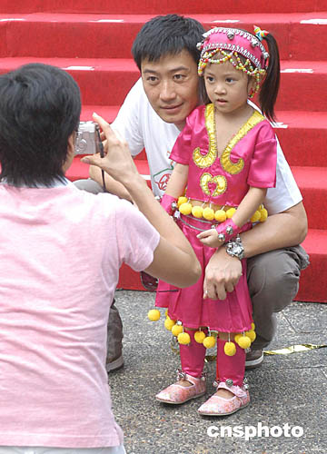 歌星黎明9月28日在香港出席「公益金便服日」突破紀(jì)錄儀式,與為活動擔(dān)任表演的小朋友合照。