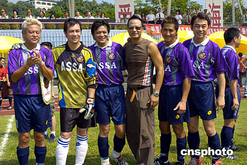 9月28日中秋節(jié),駐港解放軍與香港明星足球隊在昂船洲軍營舉行足球友誼賽,結果駐軍以2比5負香港明星隊。作者:洪少葵
