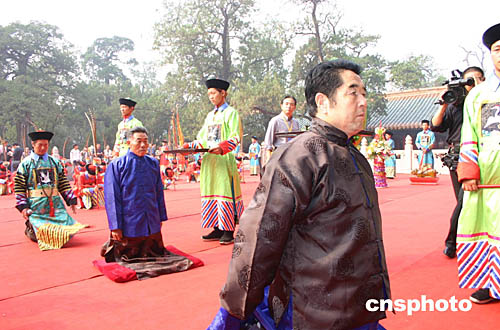 九月二十八日,是孔子誕辰二千五百五十五周年。今年孔子誕辰將首次由官方舉行大典的消息由中新社一個(gè)月前率先向海內(nèi)外發(fā)出后,引起了海內(nèi)外的廣泛關(guān)注。上午八點(diǎn)多,參加大典的官員和許多聞?dòng)崒3虖暮M廒s來的孔子后裔、崇敬孔子的外國(guó)朋友、研究儒學(xué)的專家學(xué)者,以及孔子故里曲阜的市民,早早來到曲阜明代故城南門“萬仞宮門”內(nèi)的孔廟正門。
