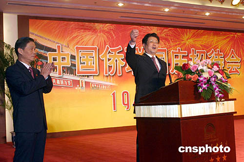 九月二十九日,中國僑聯(lián)在北京世紀金源飯店舉辦慶祝中華人民共和國成立五十五周年招待會,歡迎來京參加國慶活動的海內(nèi)外華僑華人。中新社記者:史利